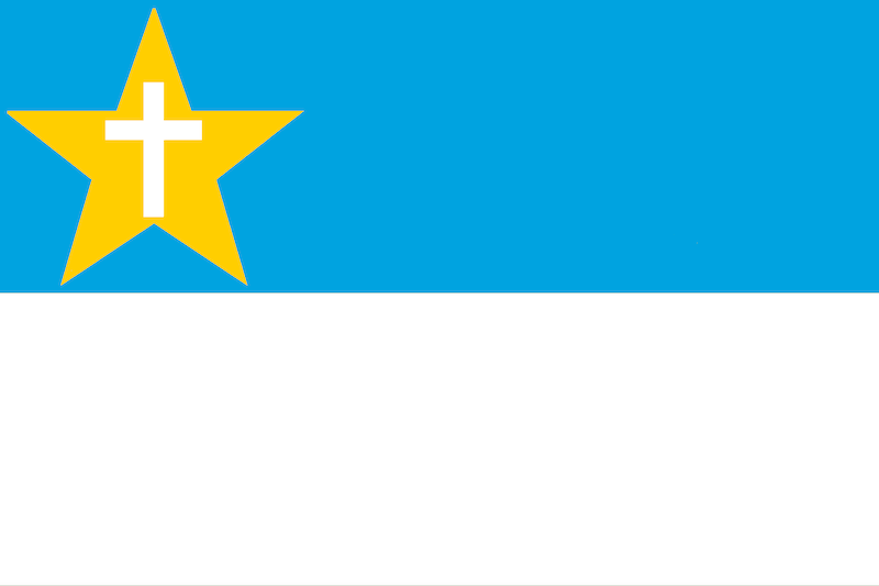 L’étoile jaune doré a une signification similaire (on retrouve cette même idée sur le drapeau acadien, NdA), c’est la Stella Maris et la bonne étoile qui doit me guider, en quelque sorte. La croix latine d’argent blanche complète cette idée.