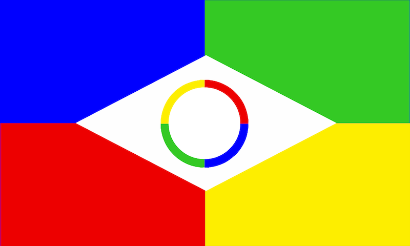 « Le drapeau concerne notre petit noyau familial. Le drapeau a la forme du drapeau brésilien car nous avons passé trois ans au Brésil, pays de naissance de ma fille et les couleurs sont celles de tous les pays qui comptent pour nous : France, Italie, Portugal, Canada, Danemark, Maroc, États-Unis ainsi que les couleurs de la Lorraine ; le cercle symbolise nos voyages dans un rond blanc pour la Paix dans le monde. »