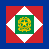 Il s’agit d’un étendard carré aux couleurs du drapeau italien, bordé de bleu (couleur de l’Italie que l’on retrouve notamment sur le maillot de l’équipe nationale de football) et comportant les armes nationales en or au centre.