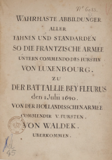 Wahrhaste Abbildunger aller Fahnen & Standarden so die frantzische Armée untern Commendo des Fürsten Von Luxembourg zu Der Battallie beÿ Fleurus