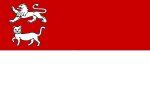 Le drapeau familial reprend les couleurs et les figures des armes familiales : « De gueules au chat d’argent surmonté d’un lion de même ».