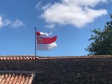 Les jours de fête, le drapeau est accompagné d’une flamme aux couleurs de la famille.