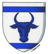Projet de drapeau personnel, conçu à partir des armoiries familiales qui se blasonnent ainsi : « d’argent au rencontre d’auroch d’azur accompagné de deux burelles du même ».